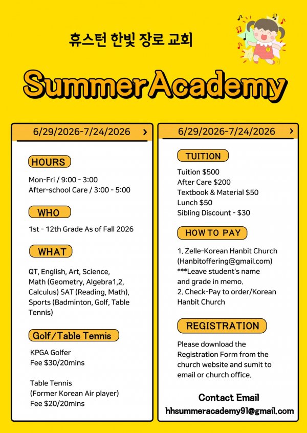 Houston Hanbit Church is currently hiring Summer Academy 2023 teachers and