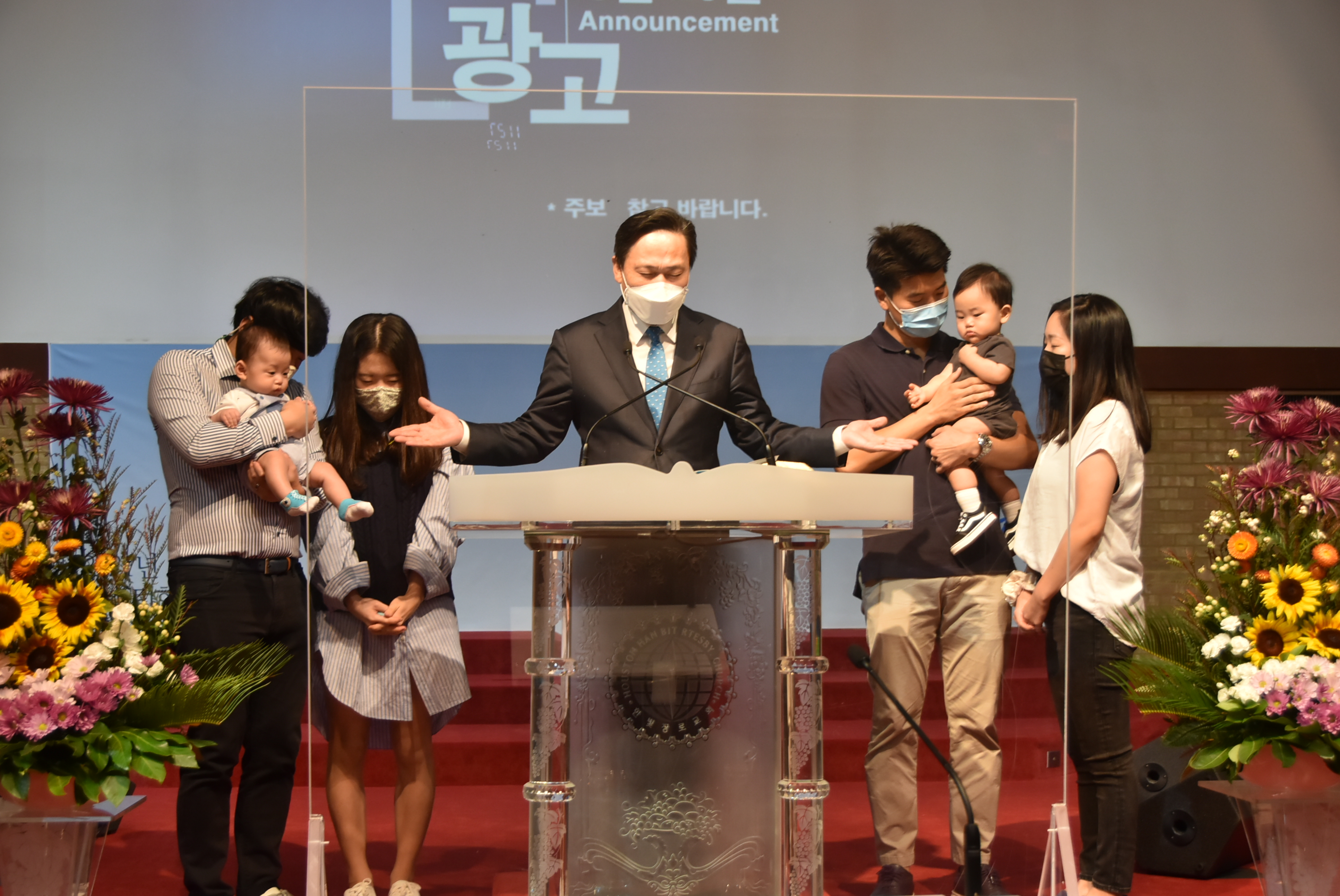 첫 출석 아기(박용만/장소영가정 엘리엇, 유영기/김한나 가정 태오)